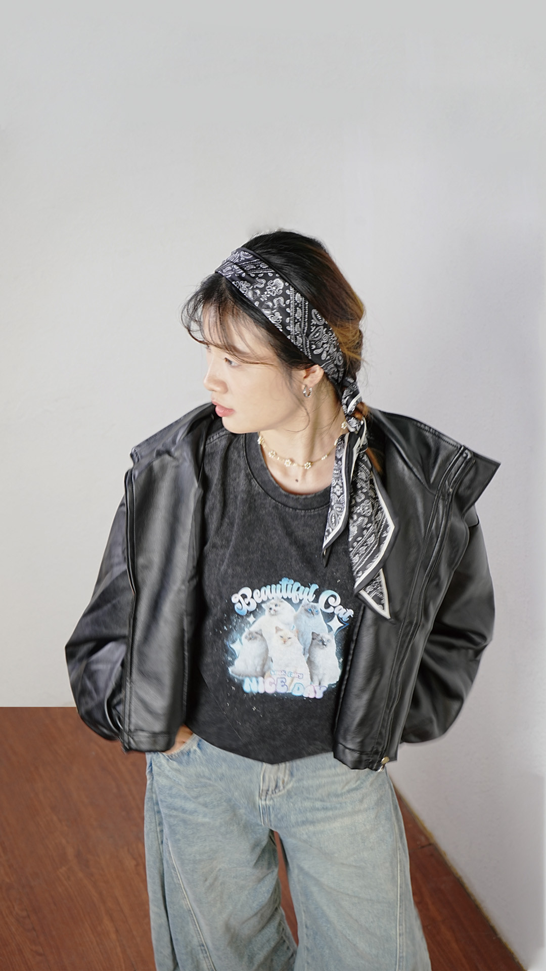 Hate Monday'' - Washed Beautiful Cat Graphic T-Shirt #628